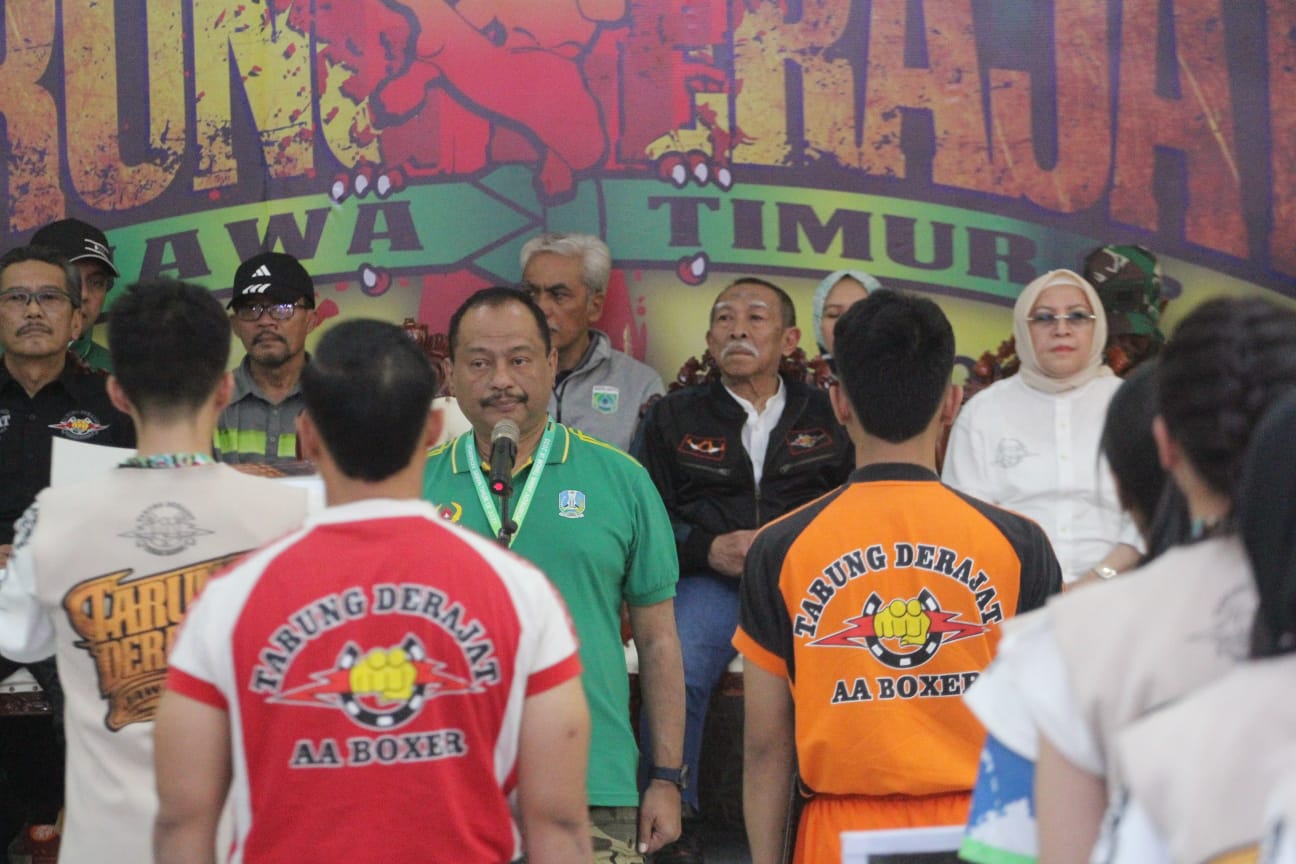 Kialsbisnis.com,Kota Batu- Pertandingan cabang olahraga Tarung Derajat pada Pekan Olahraga Provinsi (Porprov) Jatim IX 2025, resmi dimulai di Hall Hotel Ciptaningati, Kota Batu, Rabu (2/7/2025). Yang istimewa, serimoni pembukaan berupa pemukulan gong dilakukan langsung oleh pendiri olahraga tarung derajat, Sang Guru Achmad Dradjat yang biasa disapa AA Boxer.