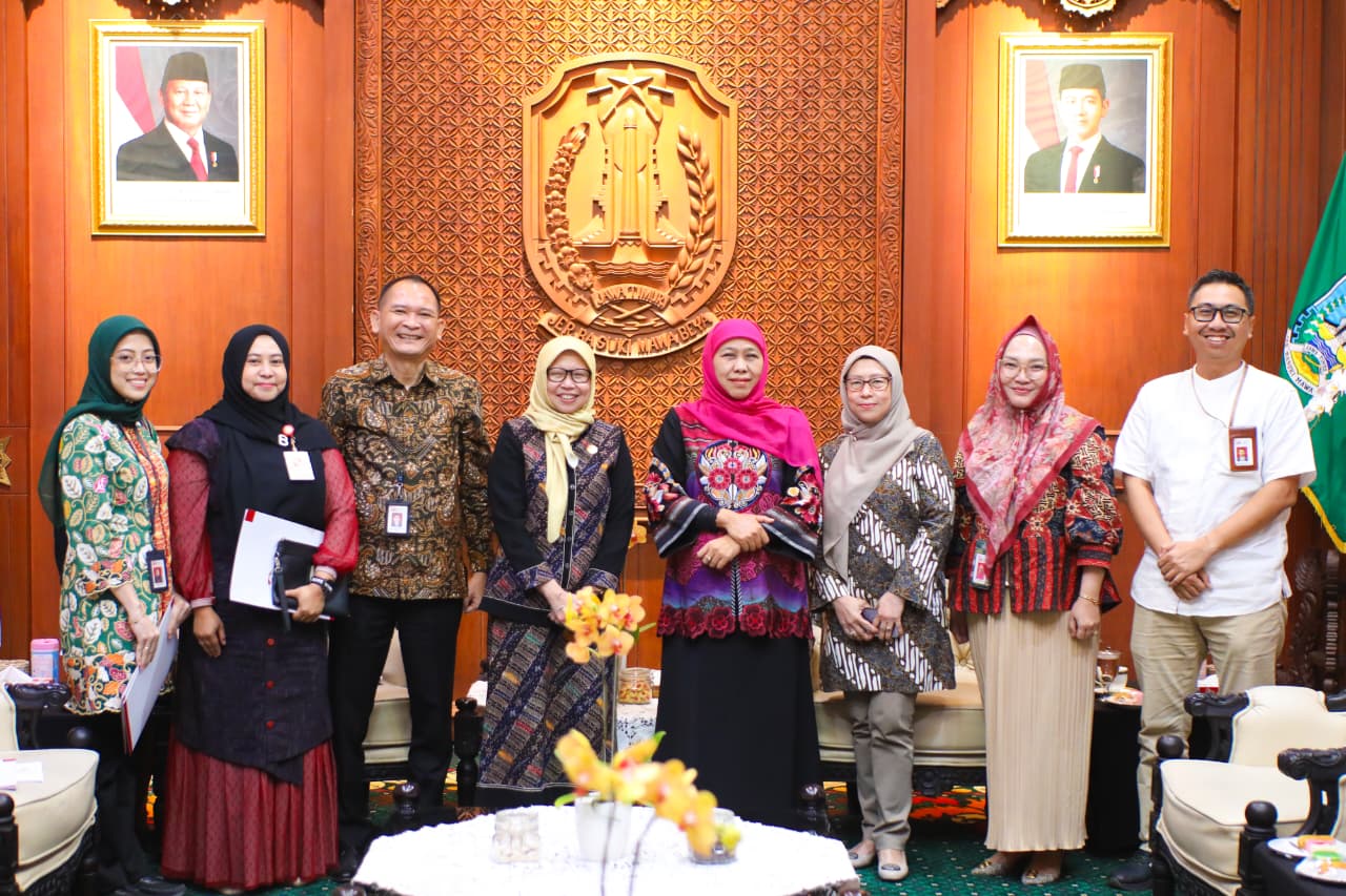 Khofifah menyampaikan dukungannya saat menerima audiensi Kepala OJK Provinsi Jawa Timur Yunita Linda Sari beserta jajaran di Gedung Negara Grahadi, Surabaya, Rabu (15/10).