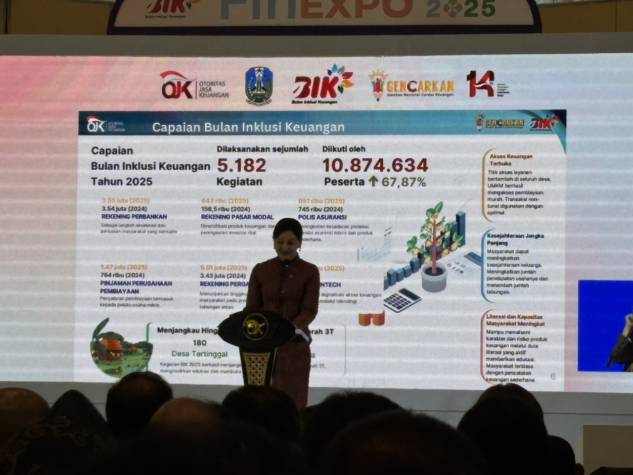 Friderica juga memaparkan hasil gemilang dari pelaksanaan Bulan Inklusi Keuangan (BIK) 2025 di 37 kantor OJK seluruh Indonesia. Sepanjang periode pelaksanaan, tercatat 5.182 kegiatan dengan total capaian 10.874.634 peserta, meningkat 67,87 persen dibandingkan tahun sebelumnya.