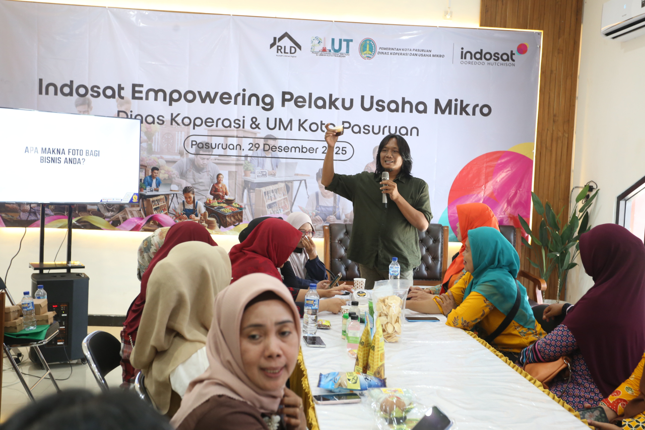 Kilasbisnis.com, Surabaya - Indosat Ooredoo Hutchison bersama Pemerintah Kota Pasuruan menggelar program Indosat Empowering UMKM di Gedung PLUT-KUMKM Kota Pasuruan, Senin (29/12/2025). Program ini bertujuan meningkatkan kapasitas pelaku usaha mikro melalui pelatihan pemasaran digital berbasis teknologi.