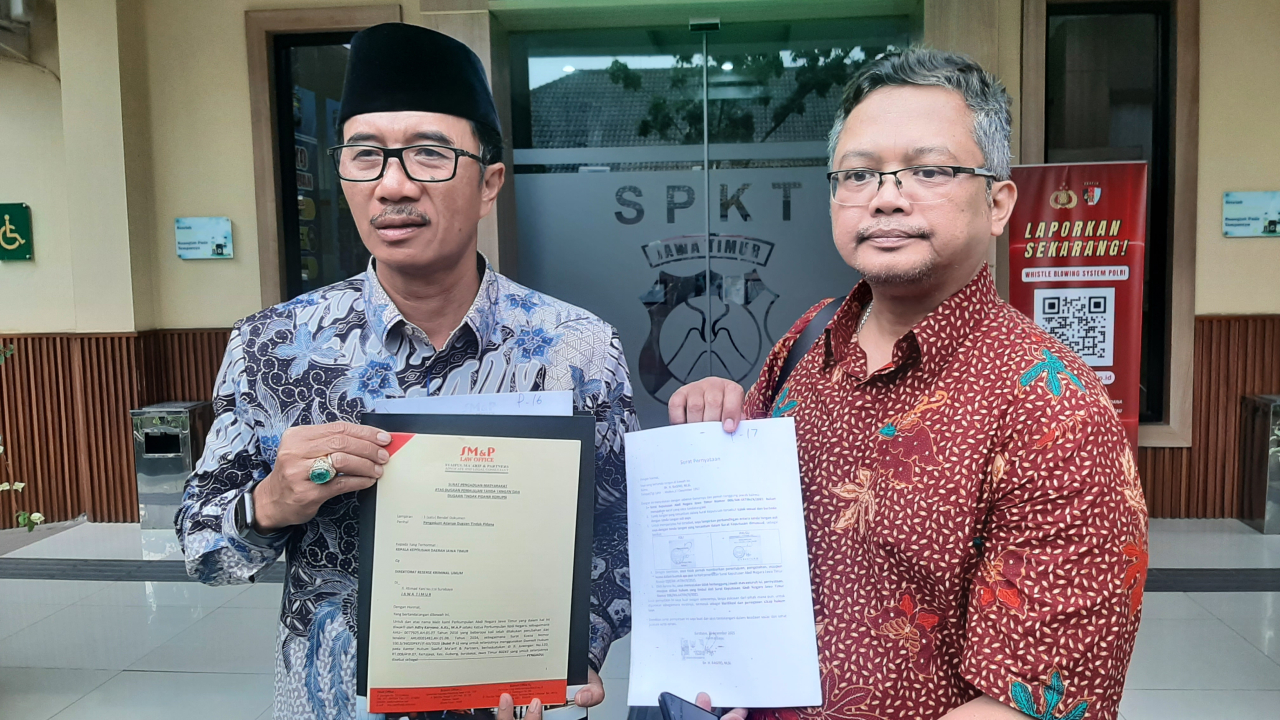 Laporan tersebut dilayangkan Ketua Umum Perkumpulan Abdi Negara (PAN) Jawa Timur, Adhy Karyono, melalui kuasa hukumnya, Syaiful Ma’arif, ke Sentra Pelayanan Kepolisian Terpadu (SPKT) Polda Jatim, Rabu (31/12/2025) petang.