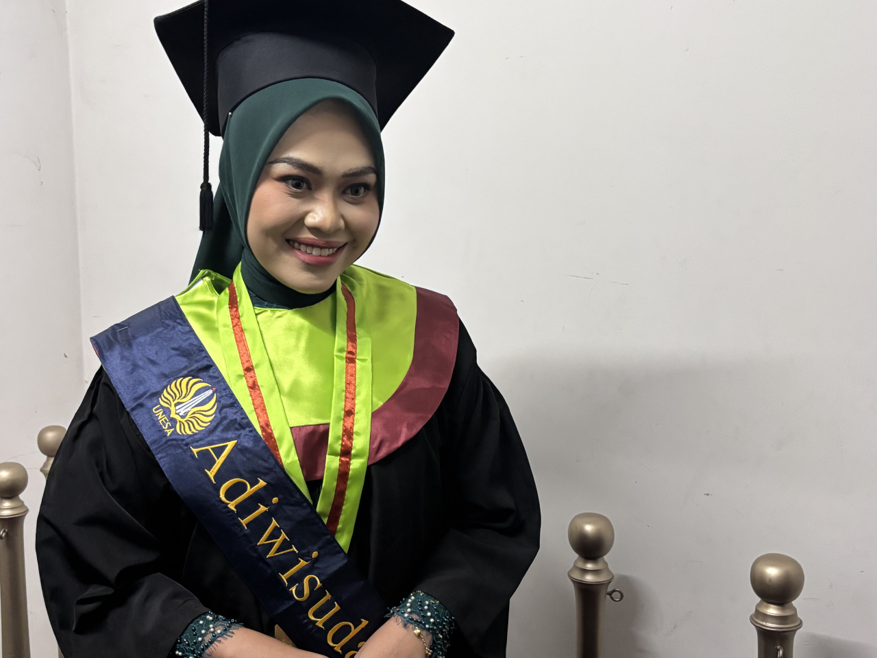 Semangat resiliensi itu juga tercermin dari wisudawan terbaik program magister, Ainus Salsabila atau Selsa, yang lulus dalam 1,5 tahun dengan IPK 4,00. Ia mengembangkan chatbot pembelajaran berbasis STEAM-ESD untuk meningkatkan literasi sains siswa SMA dan berhasil memperoleh hibah BIMA Kemdiktisaintek.
