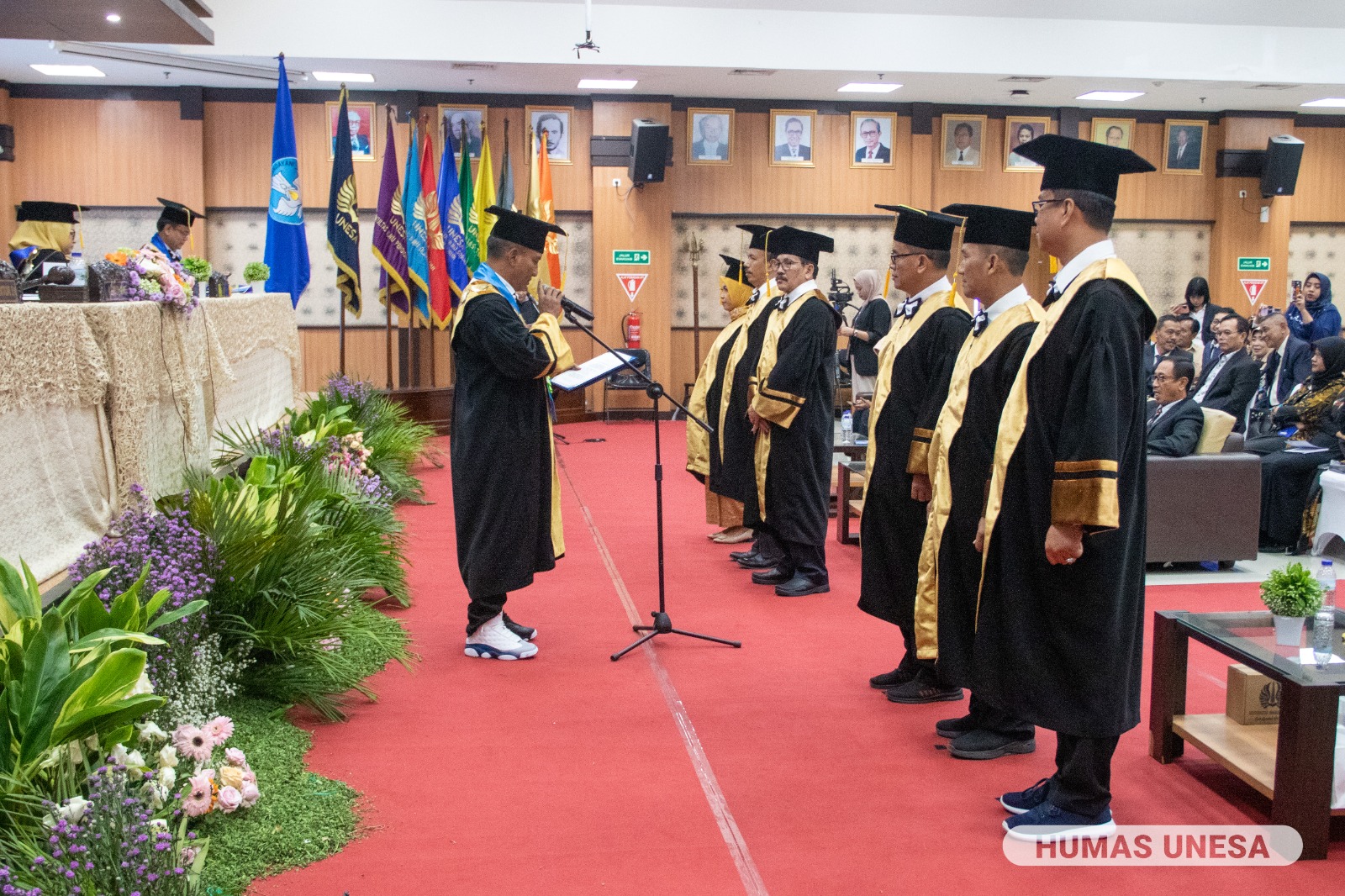 Kilasbisnis.com, Surabaya— Universitas Negeri Surabaya (UNESA) melaksanakan pengukuhan enam guru besar (gubes) di berbagai bidang ilmu pada Selasa, 25 Juli 2023. Acara ini dilangsungkan di Auditorium, Rektorat, Kampus Lidah Wetan, Surabaya. Dengan penambahan ini, UNESA kini memiliki total 93 gubes.