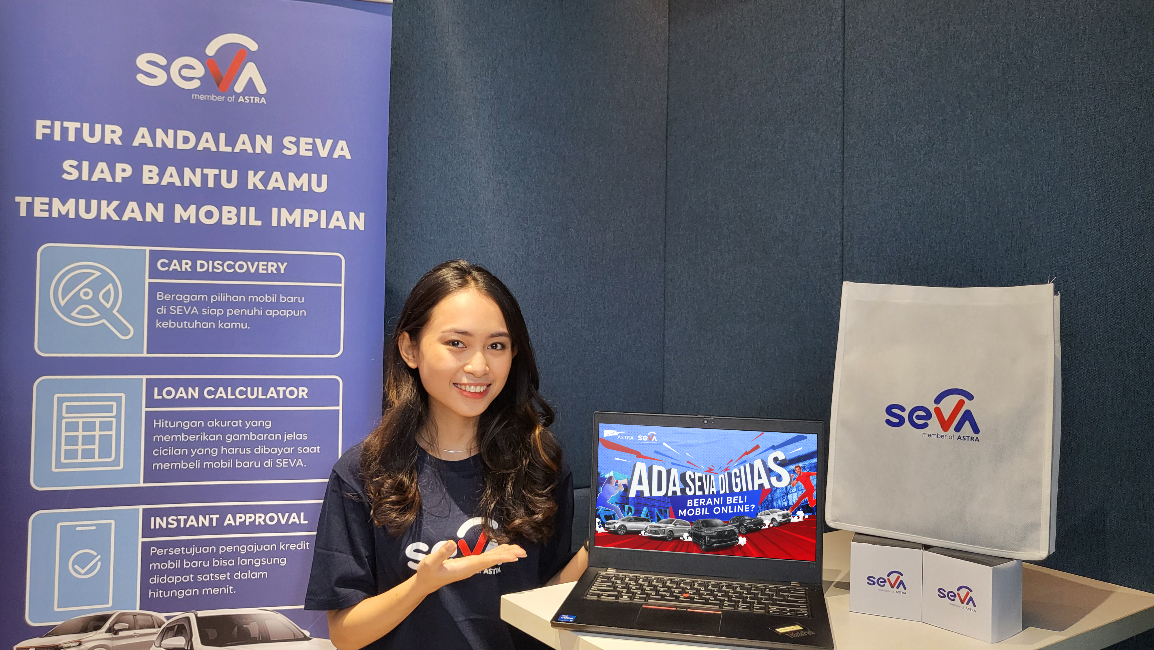Pada GIIAS 2023, SEVA akan menyediakan beragam fitur unggulan yang akan mempermudah proses pembelian mobil dari brand Astra, antara lain Toyota, Daihatsu, BMW, Isuzu, dan Peugeot. Pengunjung yang melakukan pembelian mobil melalui situs Seva.id akan mendapatkan pembiayaan dari perusahaan pembiayaan terpercaya yang terintegrasi dengan ekosistem Grup Astra Financial, seperti Astra Credit Companies (ACC) dan Toyota Astra Financial Services (TAF). Selain itu, SEVA juga menawarkan layanan asuransi melalui Garda Oto (Asuransi Astra).