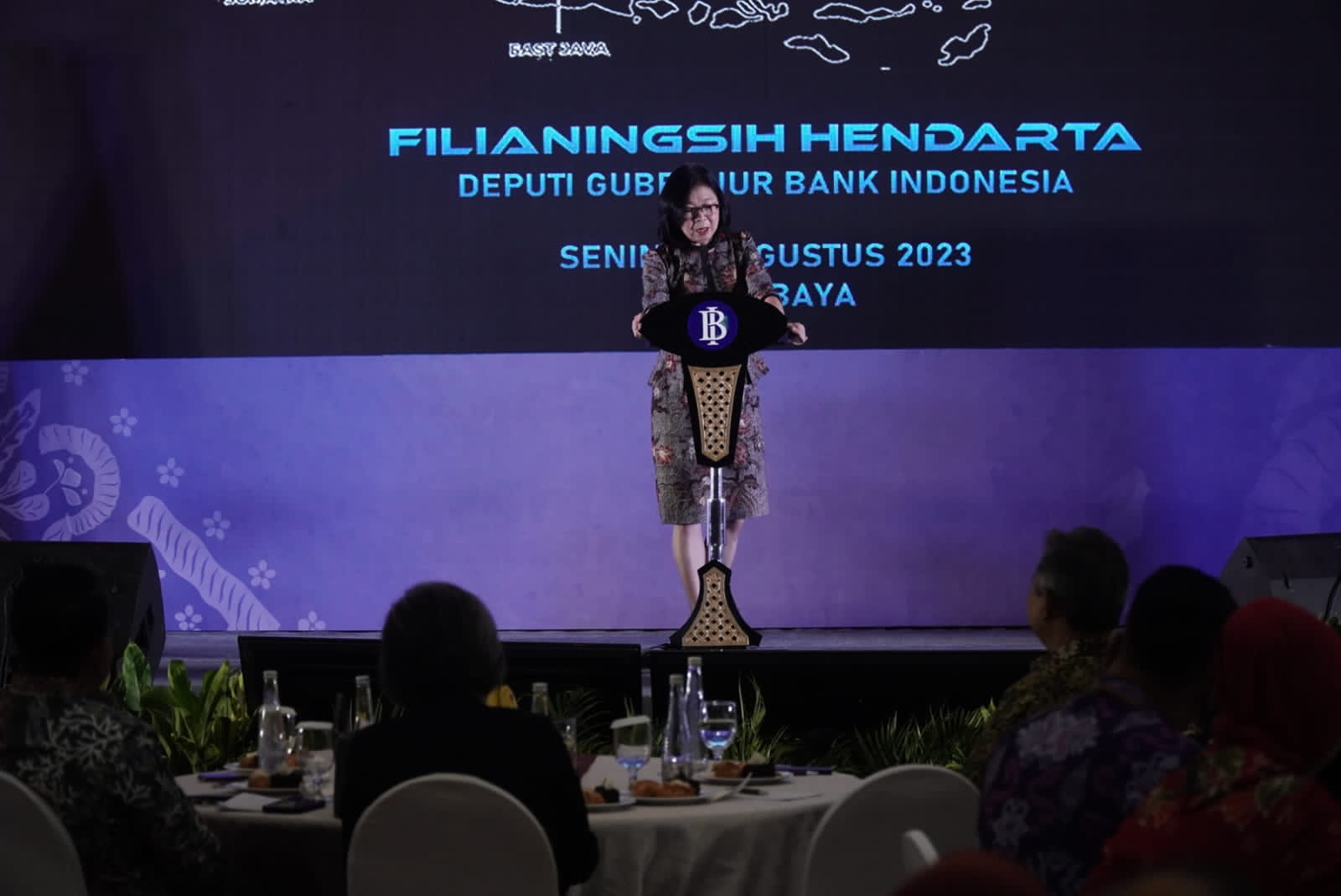 Deputi Gubernur BI, Filianingsih Hendarta, Dalam Acara Sosialisasi KKI dan QRIS di Surabaya. (Sumber gambar: Istimewa)