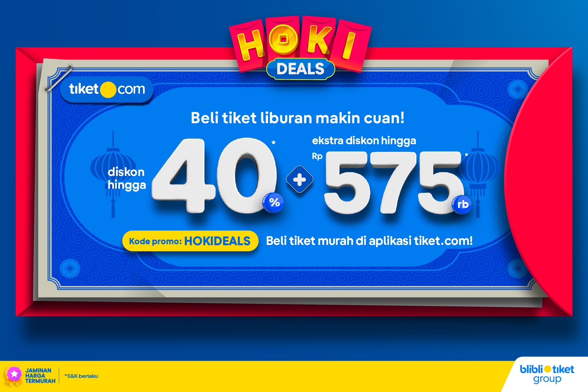 tiket.com, Online Travel Agent (OTA) pertama di Indonesia dengan fokus customer-centric Promo HOKI DEALS dari tiket.com mengedepankan berbagai pilihan akomodasi hotel, vila, dan apartemen domestik dan internasional. Di tahun ini, HOKI DEALS dapat dimanfaatkan mulai tanggal 17 Januari hingga 24 Januari 2023 dengan skema promo sebagai berikut: