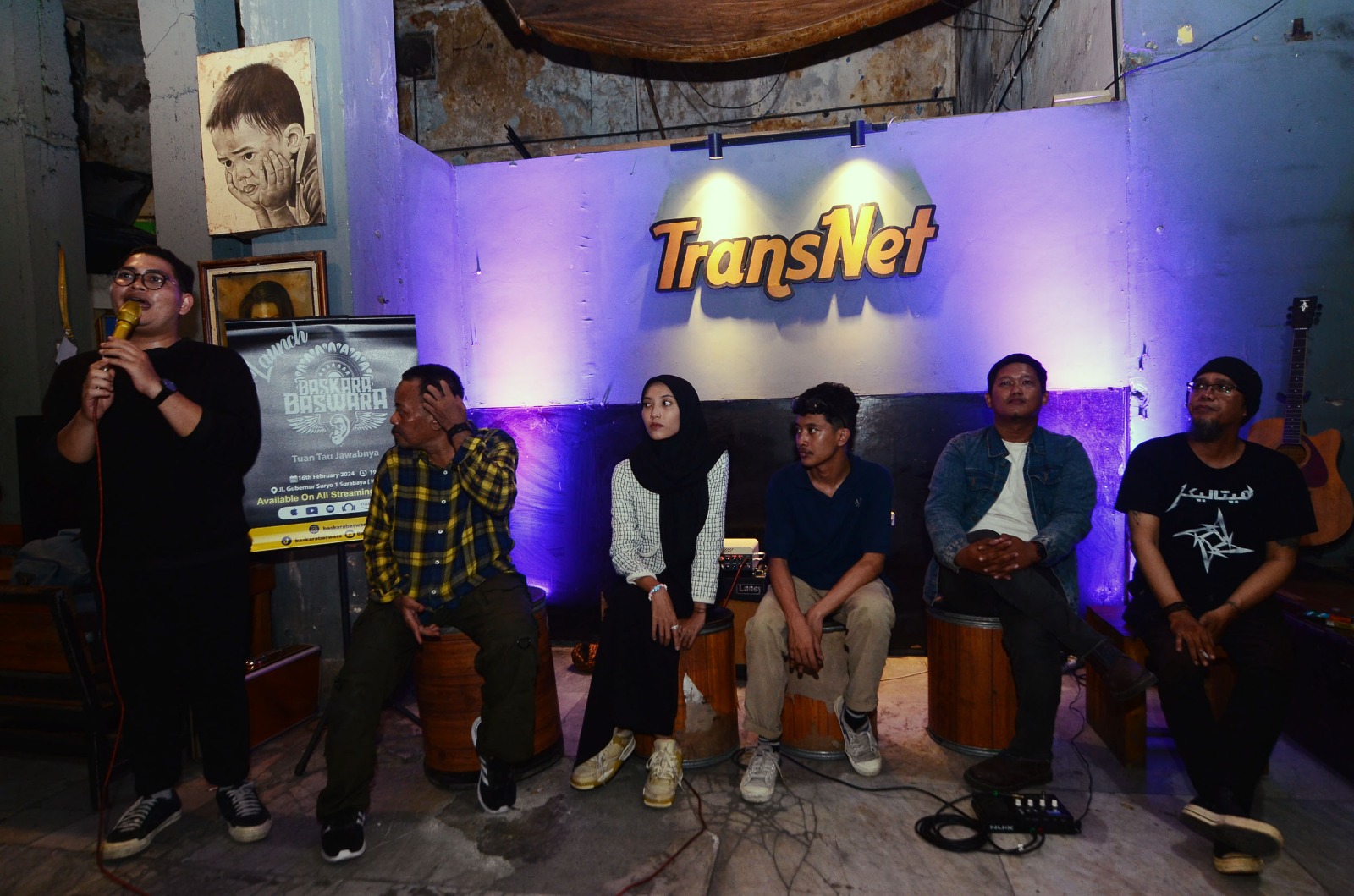 Group Band Indie asal Surabaya, Baskara Baswara saat jumpa pers di Transnet Reborn, Jalan Gubernur Suryo, Surabaya, Jumat (16/2/2024). (Sumber gambar: istimewa)
