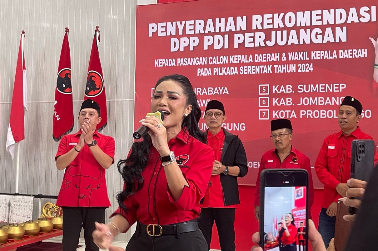 Kilasbisnis.com, Jakarta - Penyanyi sekaligus politikus PDIP Krisdayanti mengaku senang usai menerima surat tugas maju Pilkada Kota Batu di Kantor DPD PDIP Jatim. Diva pop itu langsung bersenandung menyanyikan satu tembang lagu.