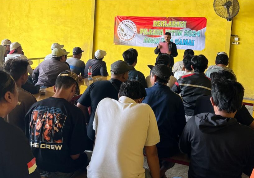 Kilasbisnis.comu,Surabaya -Sebanyak 100 orang anggota Gerakan Bakti Rakyat Nusantara Jatim menggelar deklarasi Pilkada Jatim 2024 aman dan damai di Caffe STK Pandegiling Surabaya, Selasa tanggal 19 November 2024. Melalui deklarasi ini diharapkan Kamtibmas di Jatim terjaga sehingga mendorong peningkatan ekonomi dan investasi.