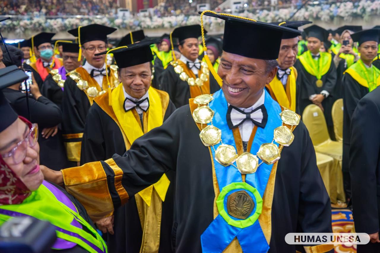 Rektor Unesa, Nurhasan, yang akrab disapa Cak Hasan, menegaskan bahwa prosesi wisuda merupakan sebuah pencapaian penting dalam perjalanan belajar di Unesa. Dalam sambutannya, Cak Hasan menyampaikan bahwa wisudawan tidak hanya menerima gelar akademik, tetapi juga tantangan dan tanggung jawab baru sebagai insan akademik. Ia berharap para wisudawan dapat memberikan kontribusi positif bagi masyarakat, bangsa, dan negara.